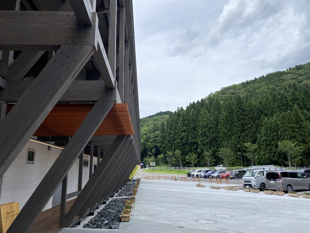 建物の背後に流れる足羽川を眺めながら食事が出来る。川の音もいい感じ。