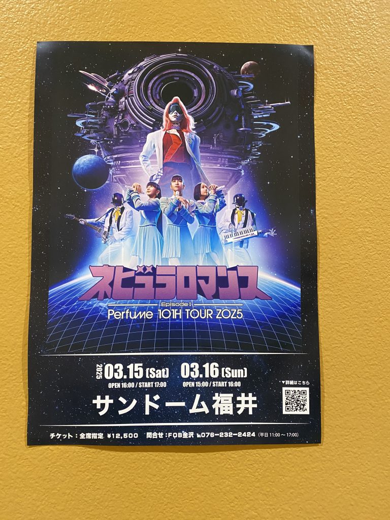 一転、後半はMC満載。過去の曲を中心に盛り上がった。perfumeがいろいろ質問するのでわかったが観客で一番年代の多い層は50歳代なのかもしれん。あと、今回初めてperfumeのコンサートに来た人がものすごく多かった。しかし、前回サンドームでやったときからもう9年も経ってるのか。福井に関する話題もいろいろあって、中でも一番印象に残っているのはサンドーム福井はアクセスがちょ~っと悪いって話だな。