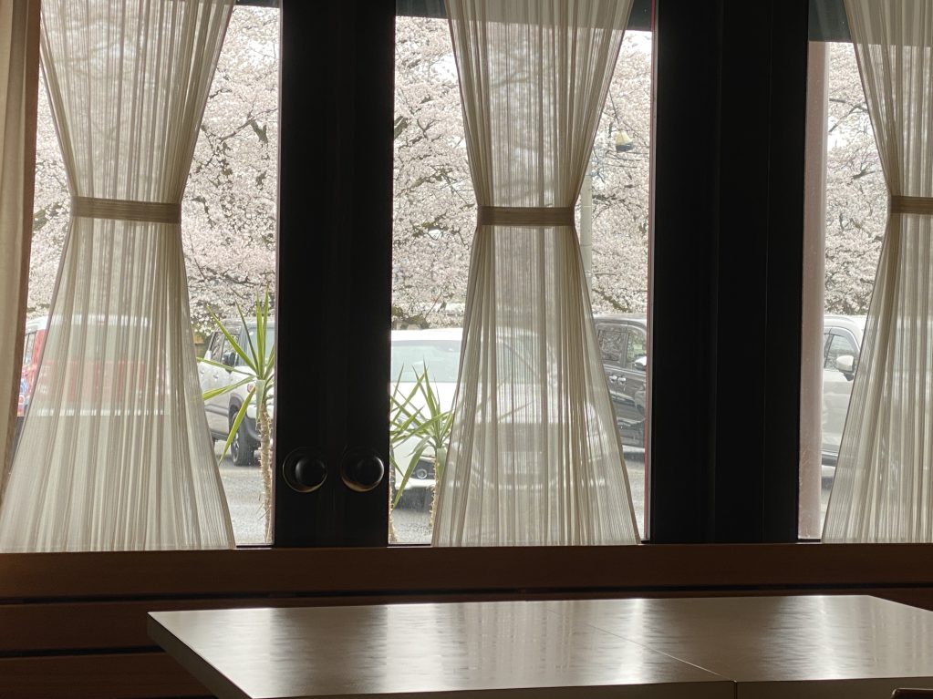 吉野瀬川の桜はかなり立派でお店の中からもちょこっとだけその優雅な様を見ることが出来る。