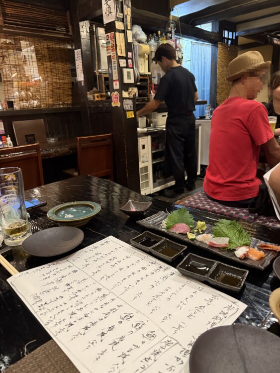 ボクは学生時代の友人を二人招いていたので、演奏後はその二人と飲み会に行ってきた。「魚貝処いけやん 円町店」。片づけをしてから来たので、後から二人の後を追ったのだがなんでこんな遠くの店にするんやって。。