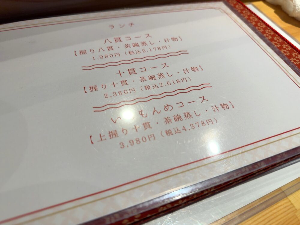 車の中で注文するメニューは決めていたのでそれを3人分。上にぎり10貫のいちもんめコース。
