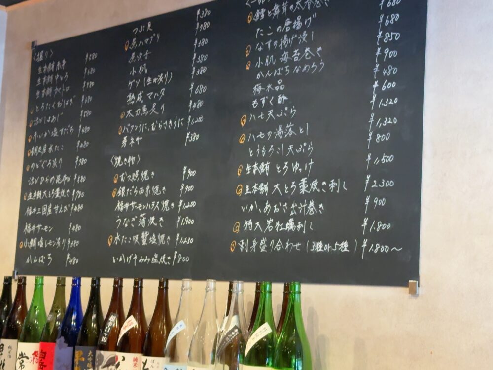 座って右側には黒板に一品メニューが書かれていた。