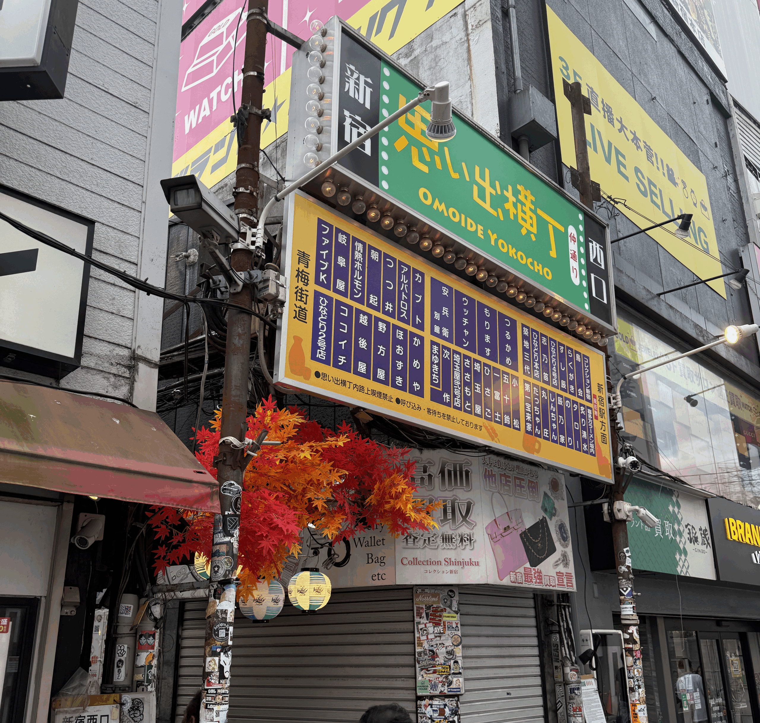 思い出横丁は過去の通称のションベン横丁を彷彿とさせる感じを残しながら、比較的新しい店構えの店も並んでいる。
