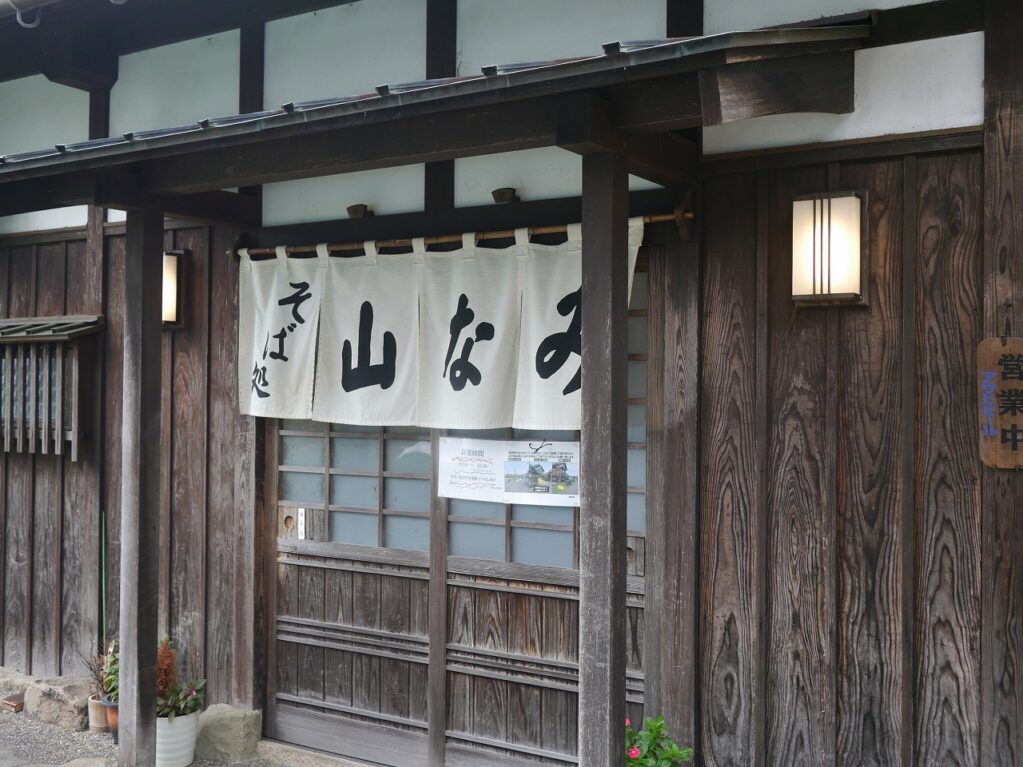 「そば処 山なみ」に行ってきた。山と田んぼに囲まれた住宅街のはずれにお店があった。古民家風の玄関でなかなか味がある。