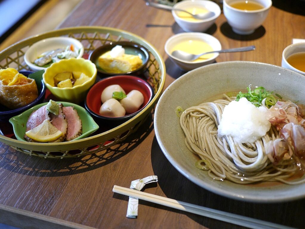彩というセットにしてみた。おろし蕎麦と籠盛りのセット。