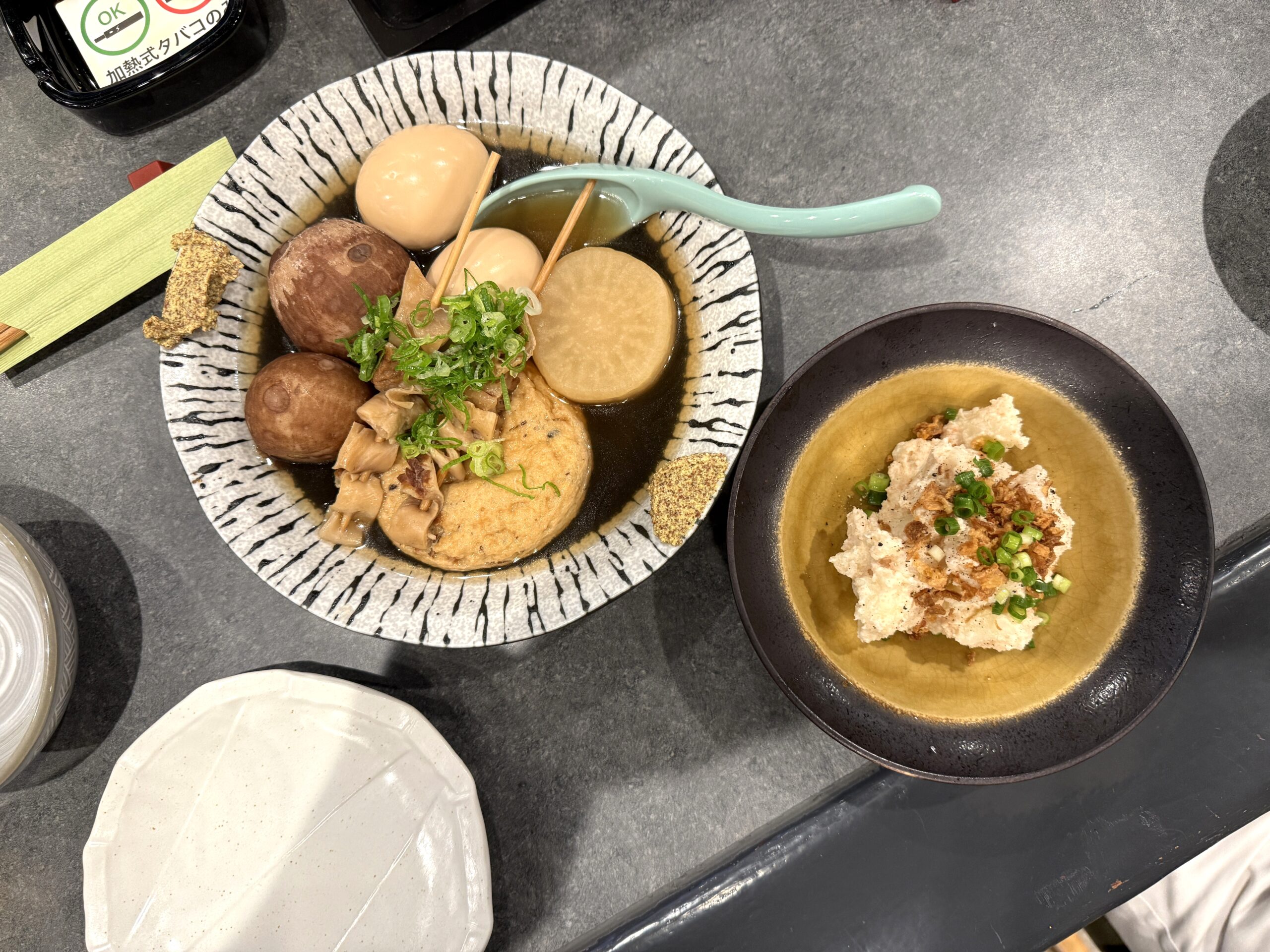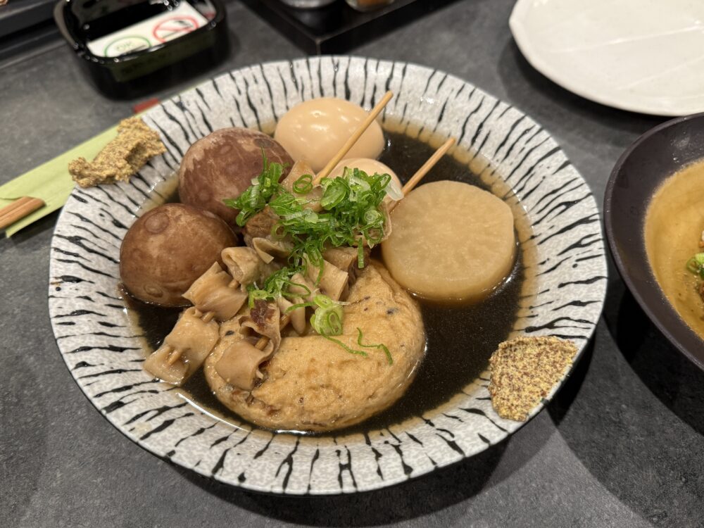 おでん。牛筋、玉子、大根、がんも、里芋。