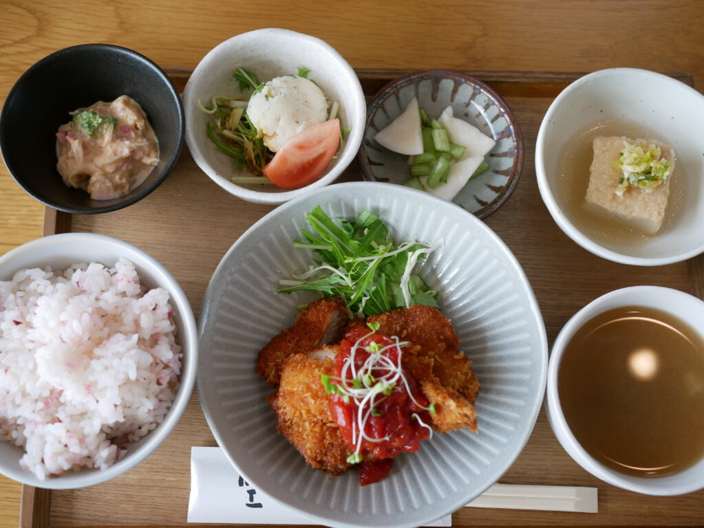そしてこれがランチプレート。ご飯は梅ごはんを選んでみた。全体に麹系の味を感じたかなぁ。知らんけど。どれも何か一工夫されてて美味しかった。メインのチキンカツも外はカリカリで中はジューシー。